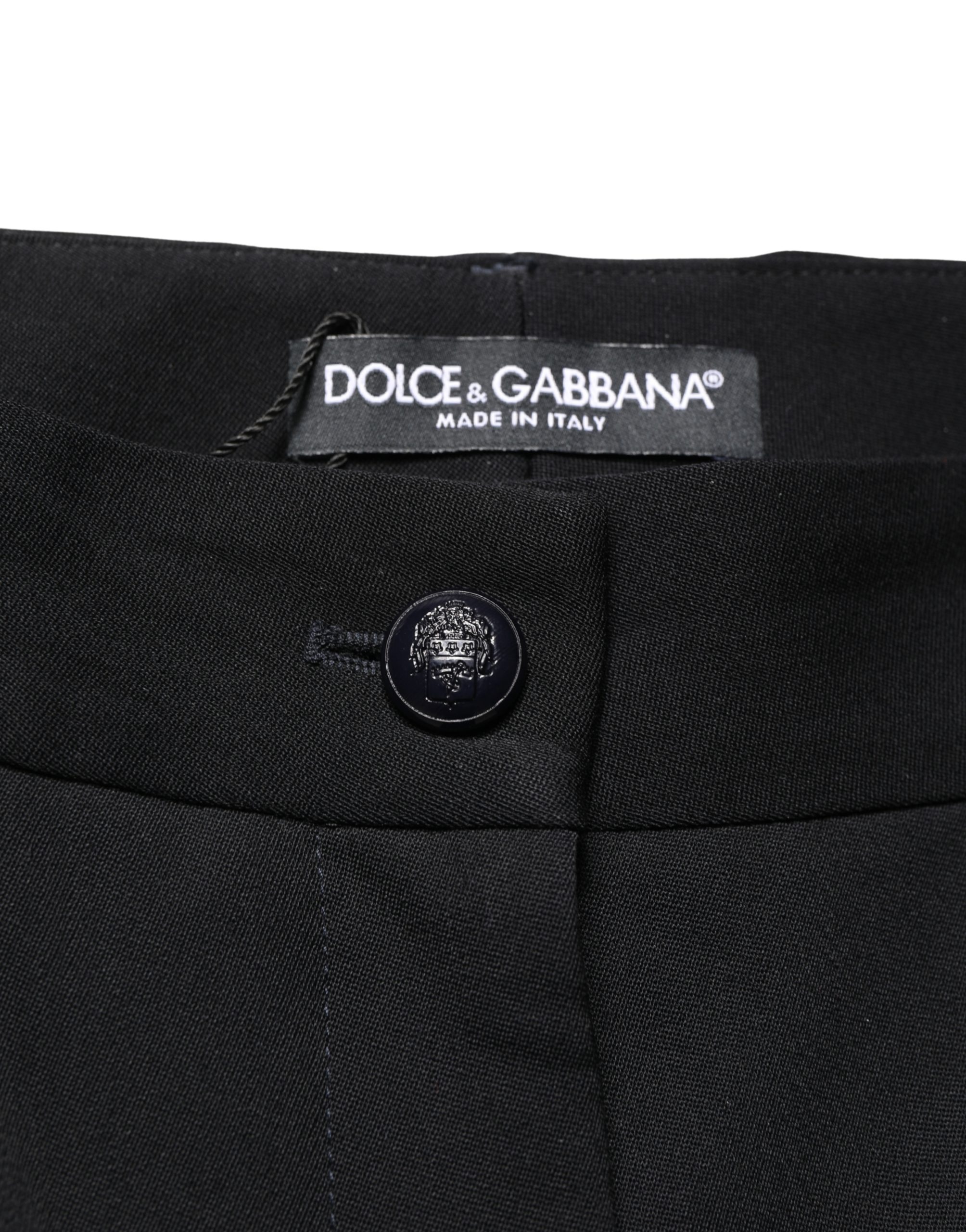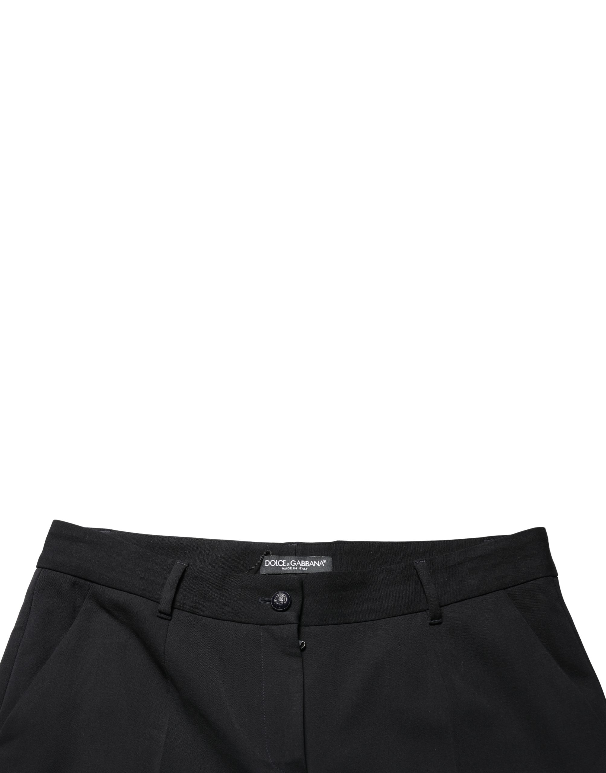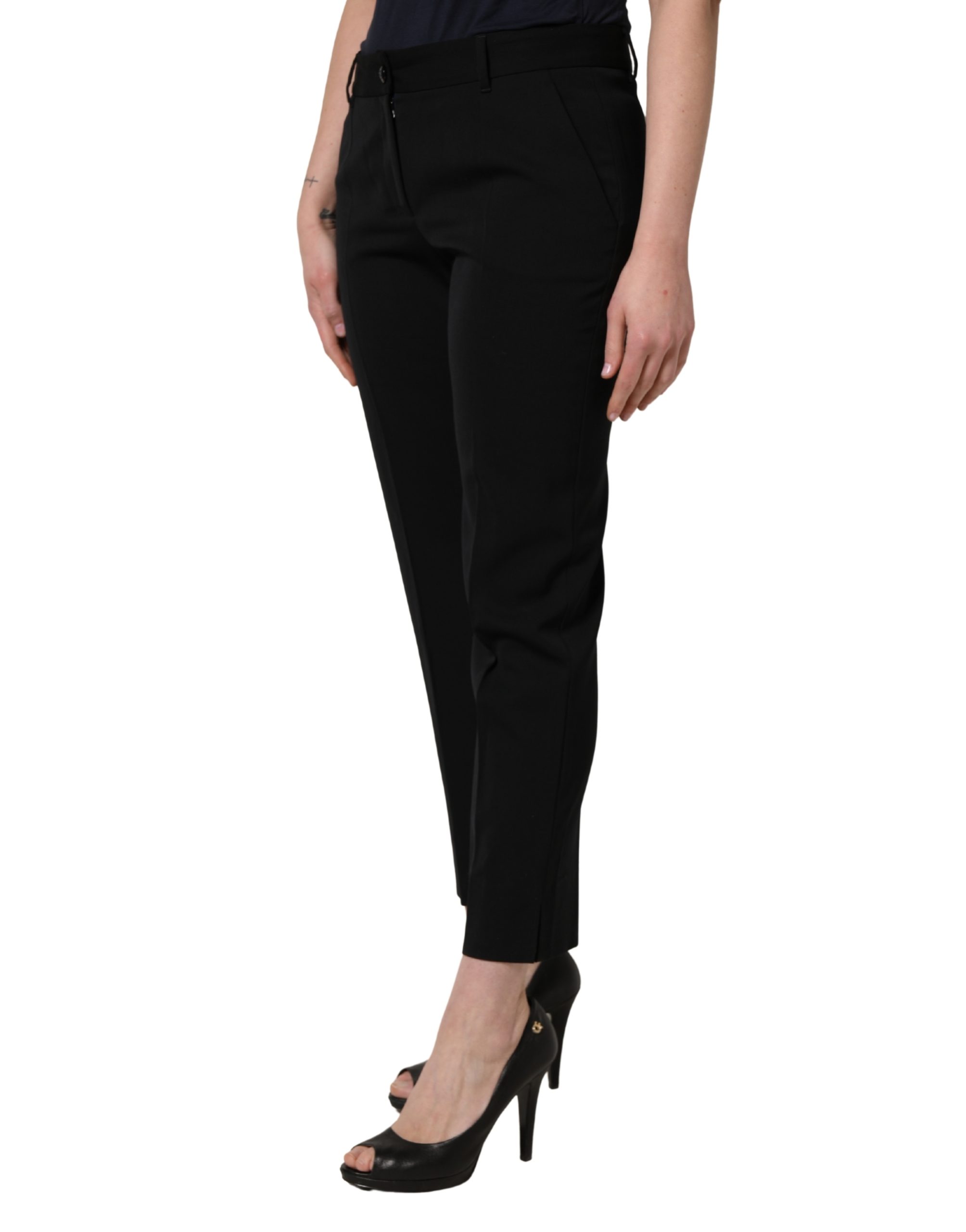 Black Wool High Waist Cropped Tapered Pants