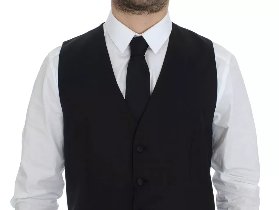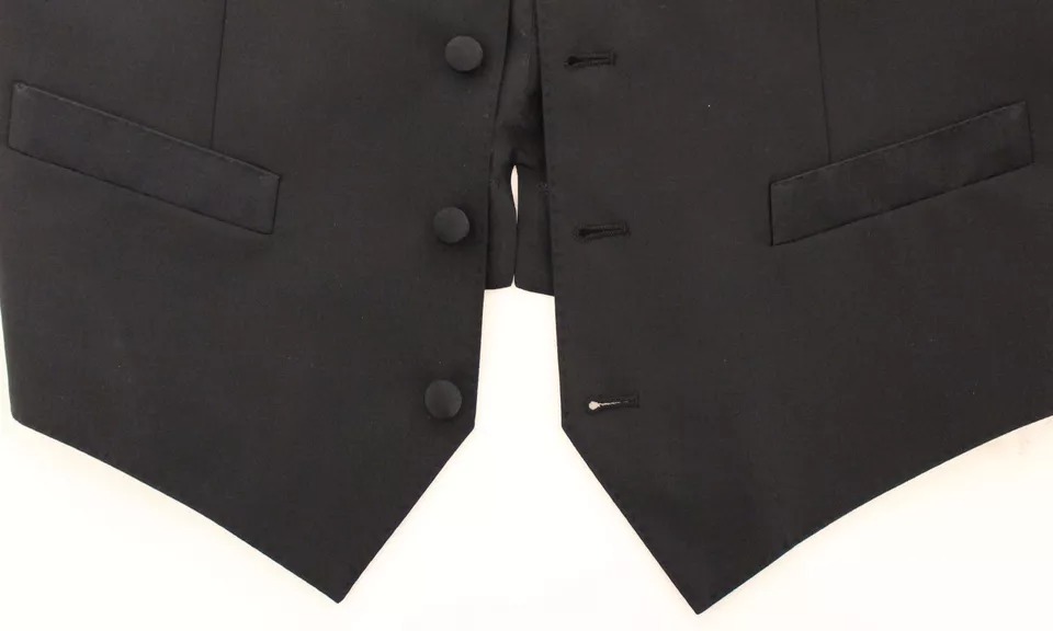 Black Wool Silk Dress Gilet Jacket Vest