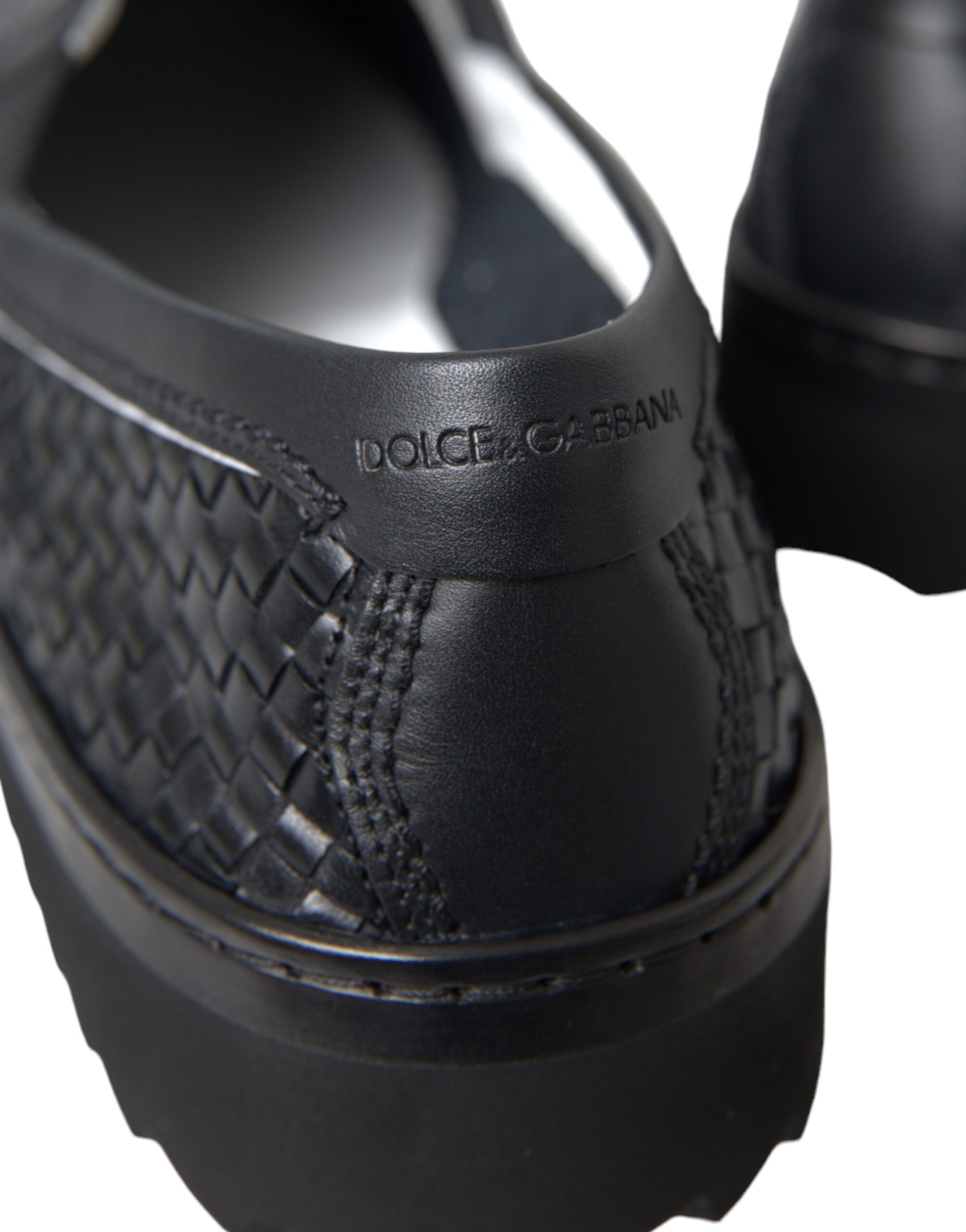 Black Woven Buffalo Leather Men Loafers Shoes