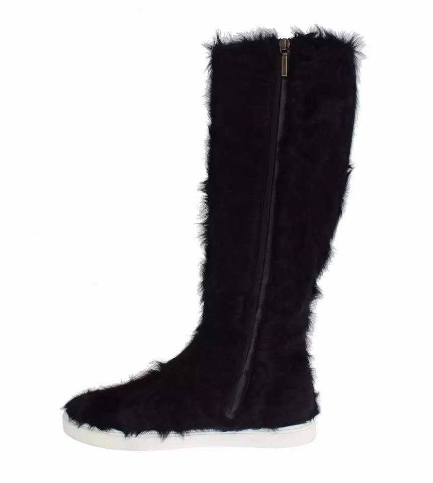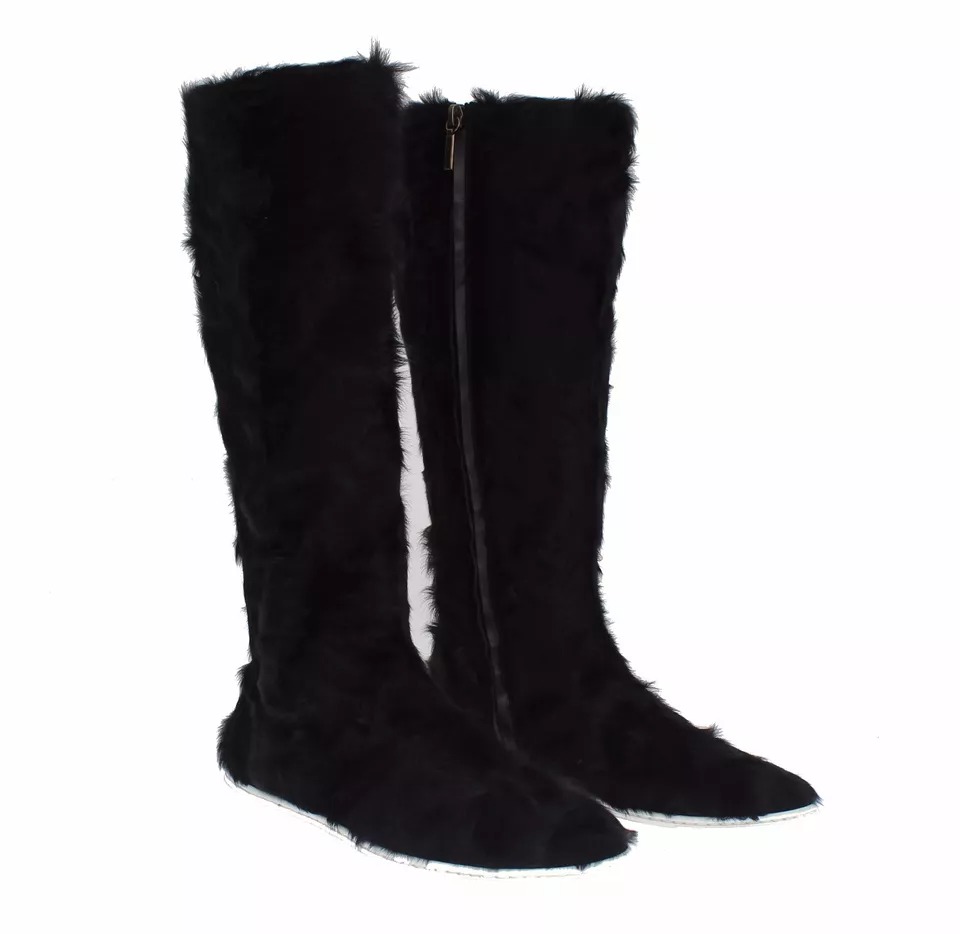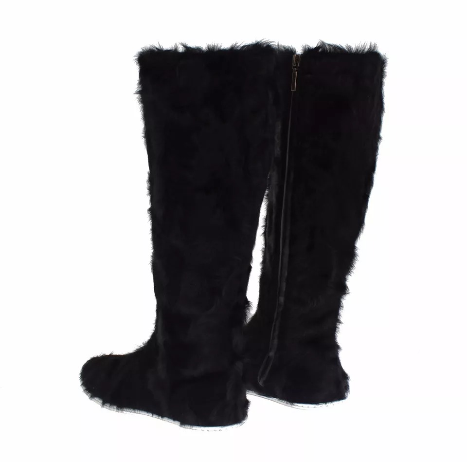 Black Xiangao Lamb Fur Leather Boots Shoes