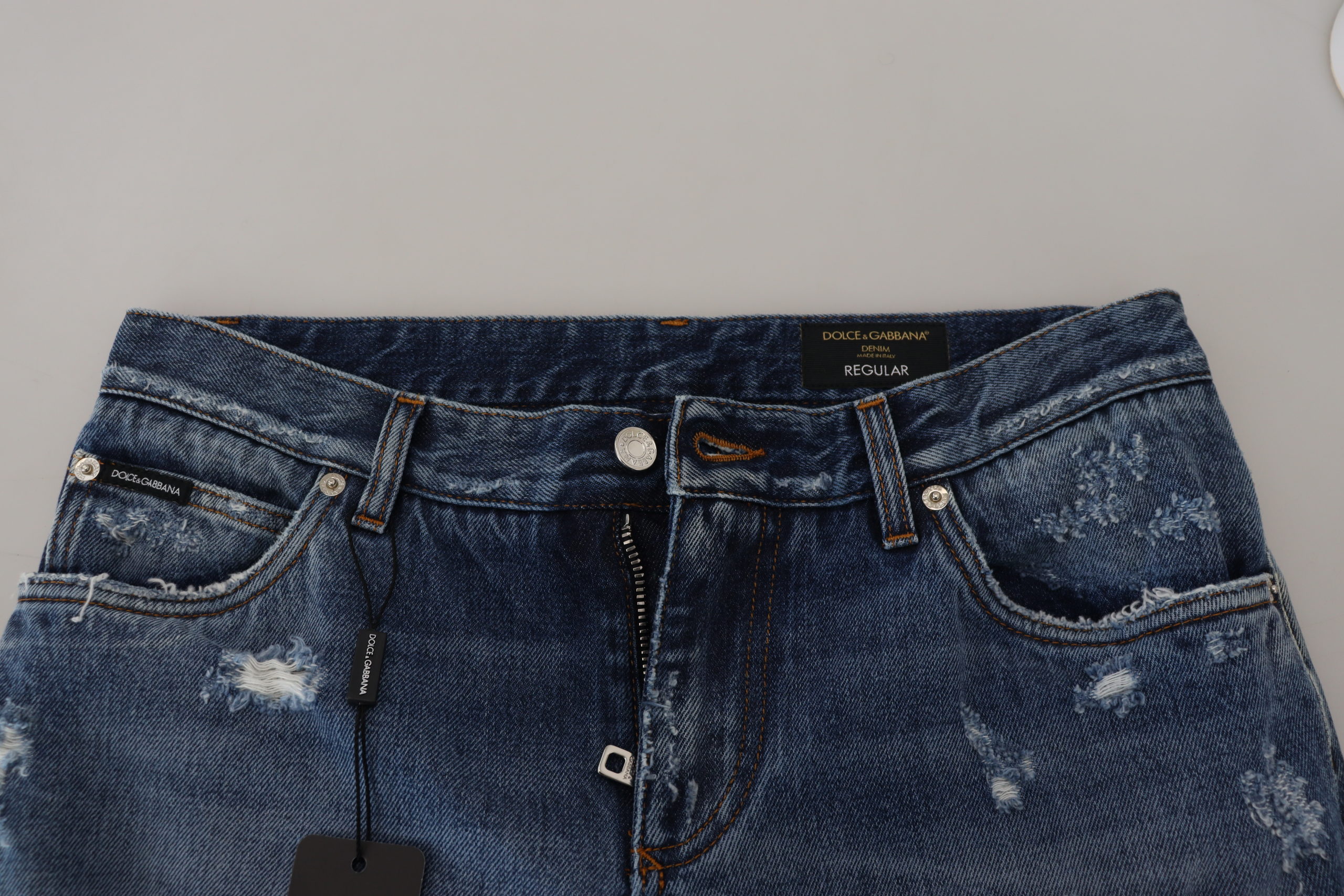 Blue Cotton Tattered Men Denim Jeans