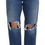 Blue Distressed High Waist Straight Denim Jeans