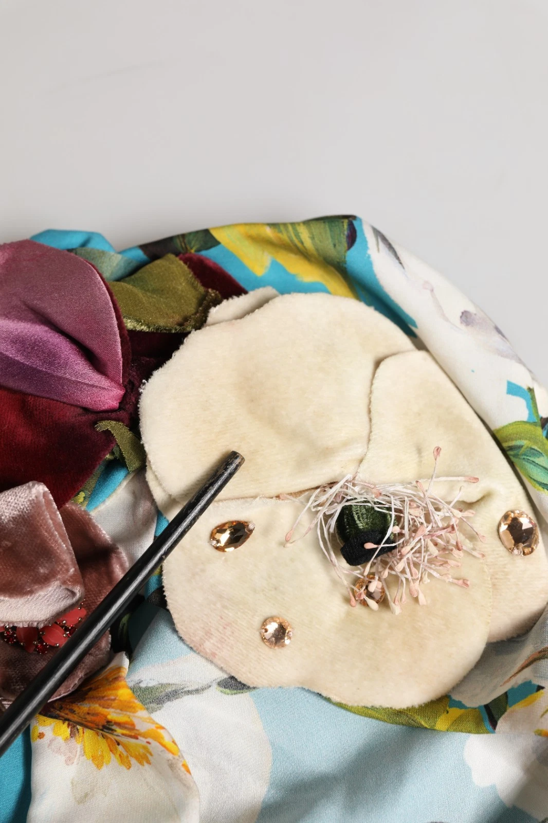 Blue Floral Motif Turban Headwear Women Hat