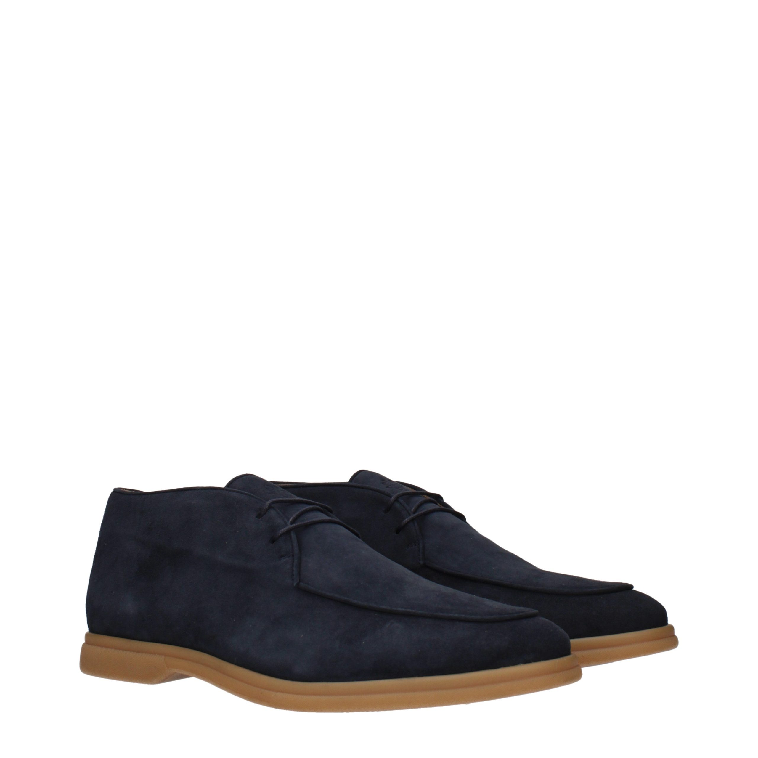 Blue Leather Lace-Up Boots