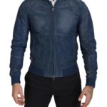 Blue Leather Perforated Full Zip Jacket