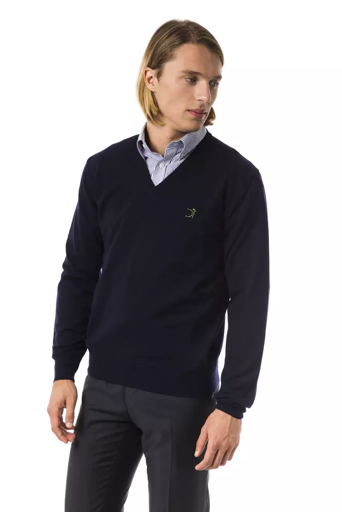 Blue Merino Wool Men Sweater