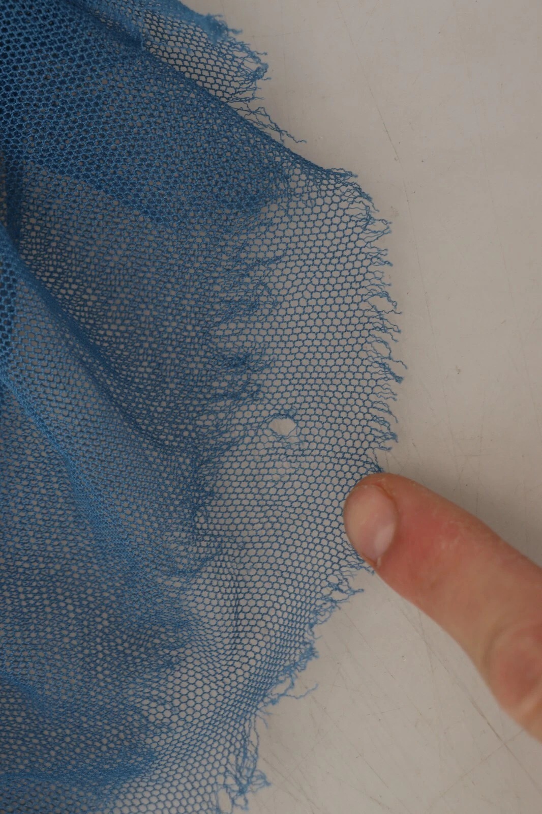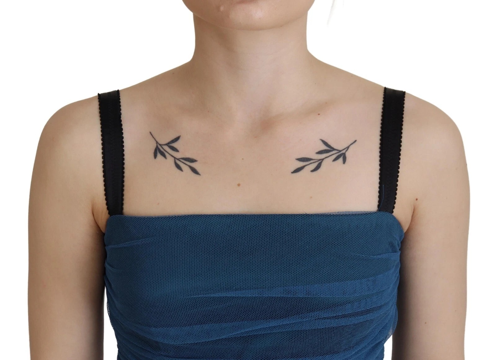 Blue Mesh Trim Ruched Tulle Sheath Dress