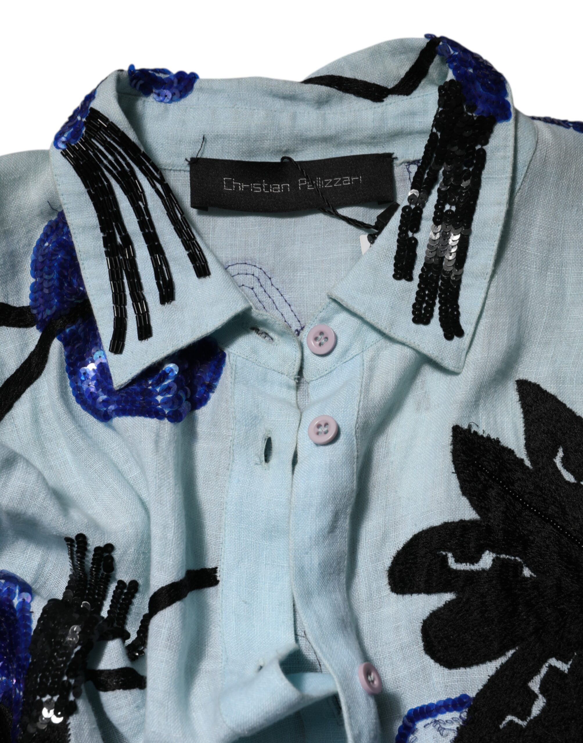 Blue Sequin Embellished Shirt Maxi Dress
