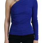 Blue Viscose One Shoulder Slim Fit Blouse Top