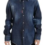 Blue Washed Cotton Button Down Collared Denim Top