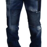Blue Washed Patchwork Straight Fit Denim Jeans