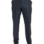 Blue Wool Men Skinny Dress Pants