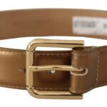 Bronze Leather Gold Logo Engraved Waist Buckle Belt
