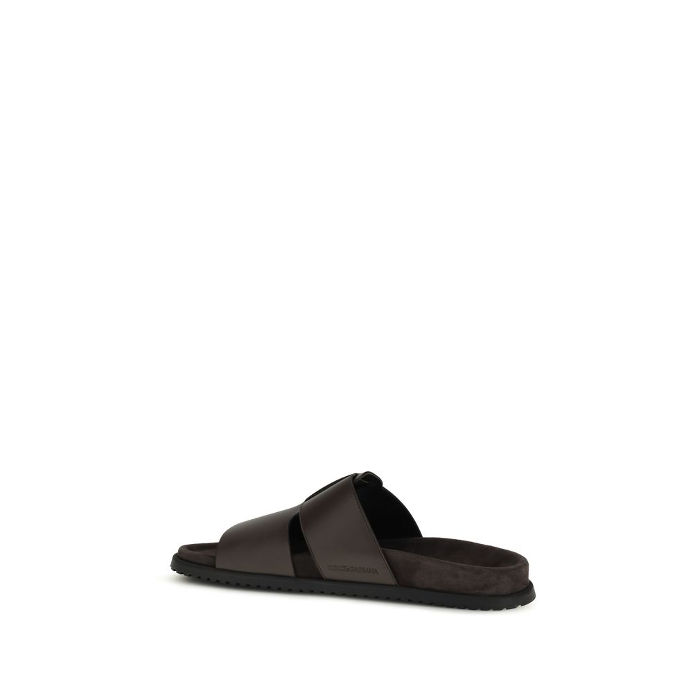 Brown Calf Leather Bos Taurus Flat Sandals
