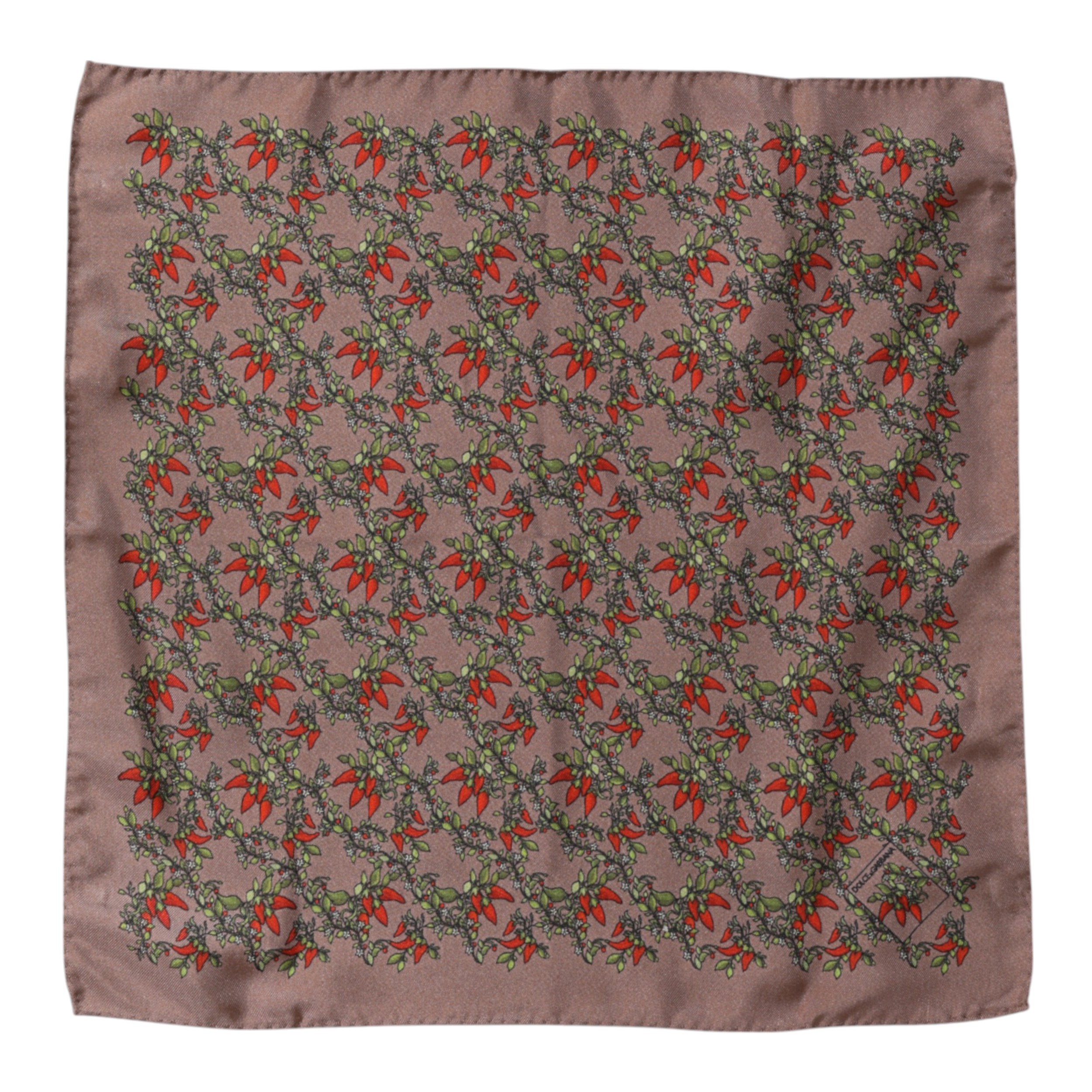 Brown Chilis Silk Square Men Foulard Scarf