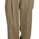 Brown Cotton High Waist Tapered Pants