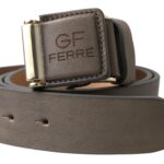 Brown Leather Fashion Logo Buckle Waist Belt