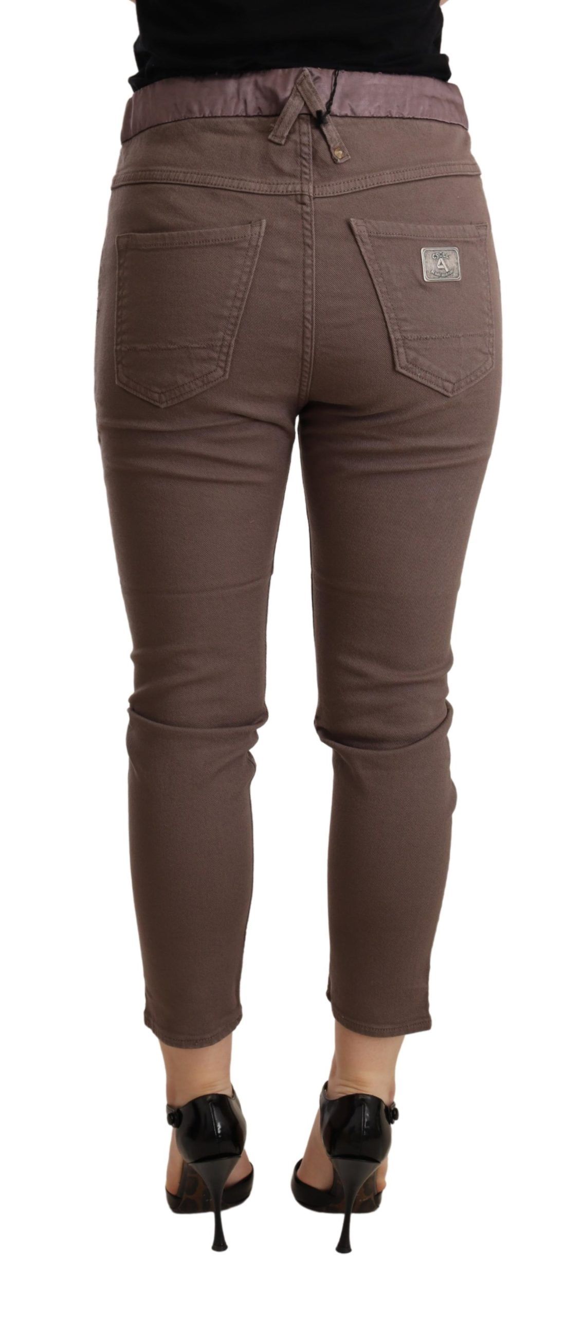 Brown Mid Waist Cropped Skinny Stretch Trouser