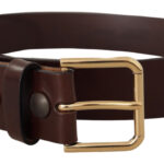 Brown Polished Leather Gold Tone Metal Buckle Belt