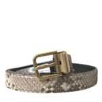 Brown Python Leather Gold Metal Buckle Belt
