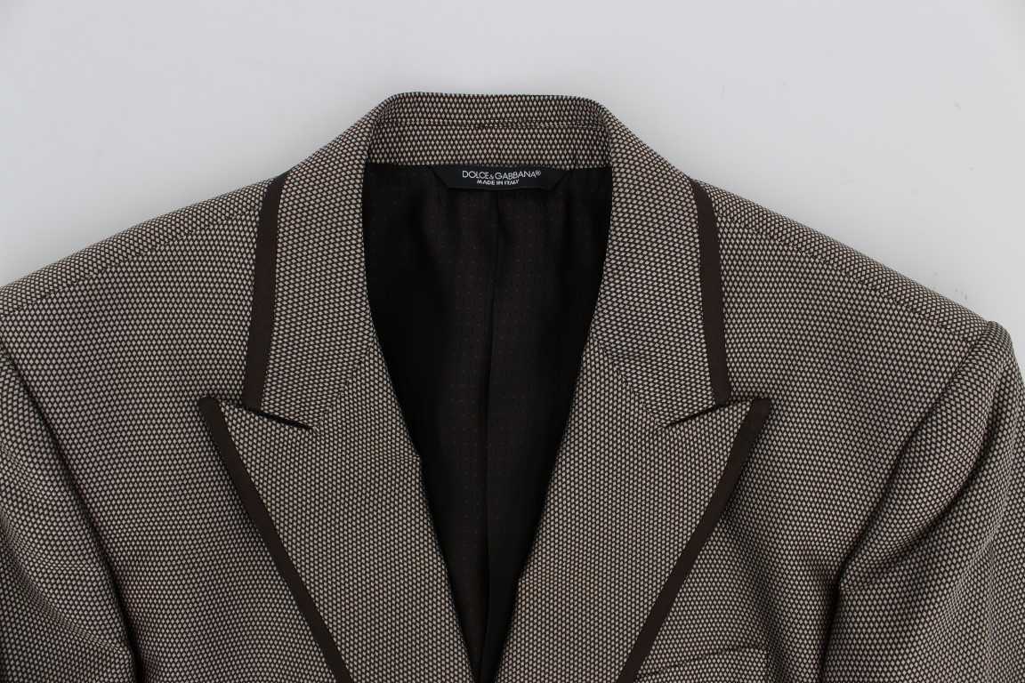 Brown Slim Fit Silk Two Button Blazer