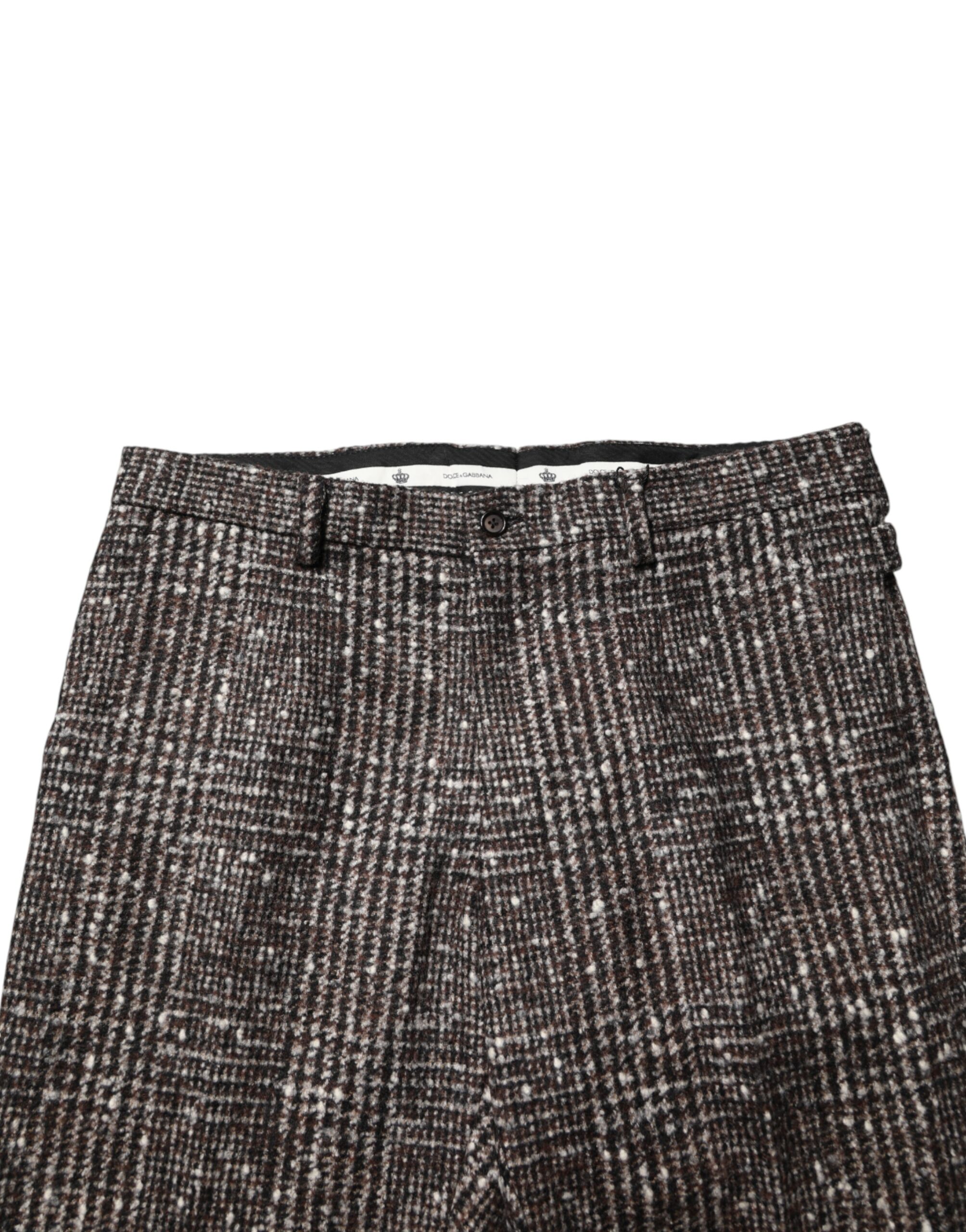 Brown Wool Plaid Skinny Dress Trouser Pants