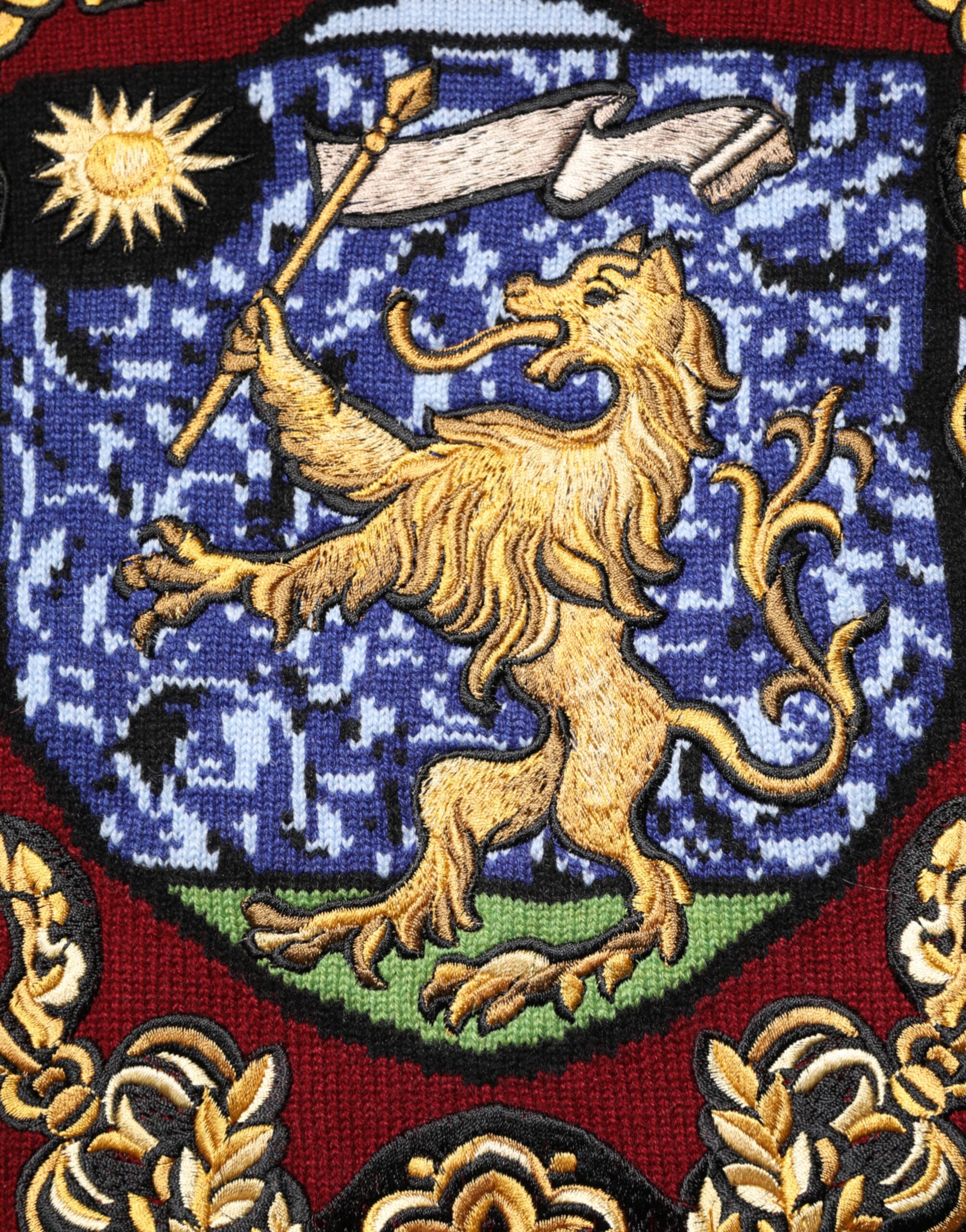 Burgundy Cashmere Lion Crest Pullover Sweater