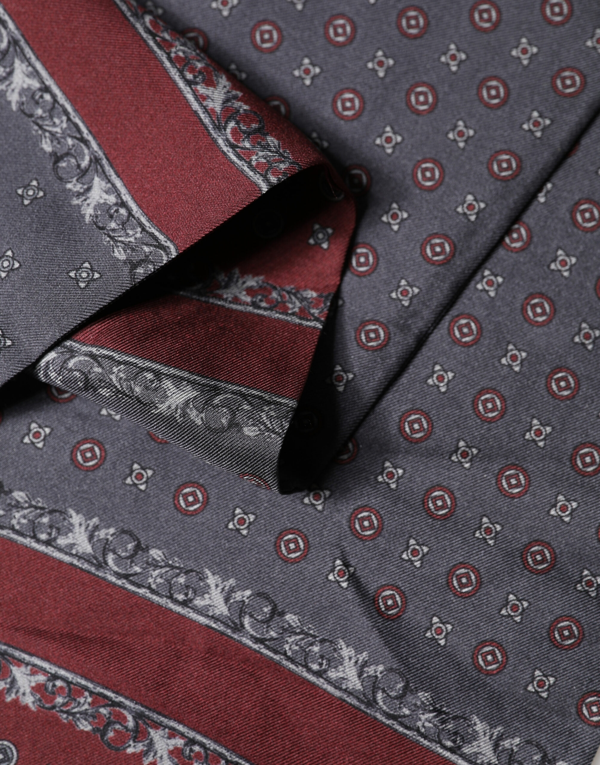 Burgundy Gray Patterned Fringe Foulard 141cm X 15.5cm Scarf