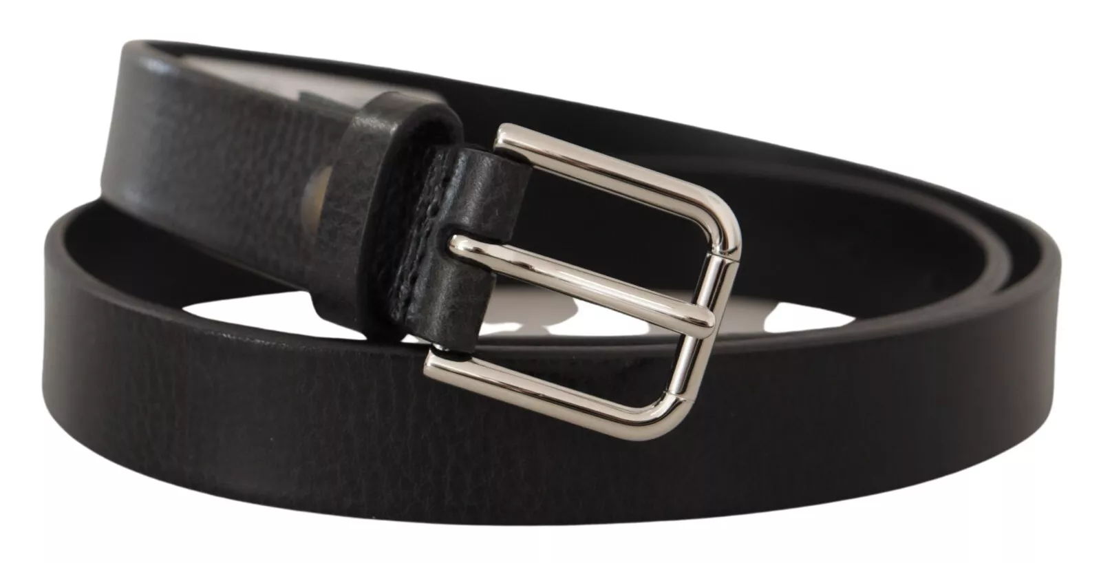 Calf Leather Silver Tone Black Metal Buckle Belt