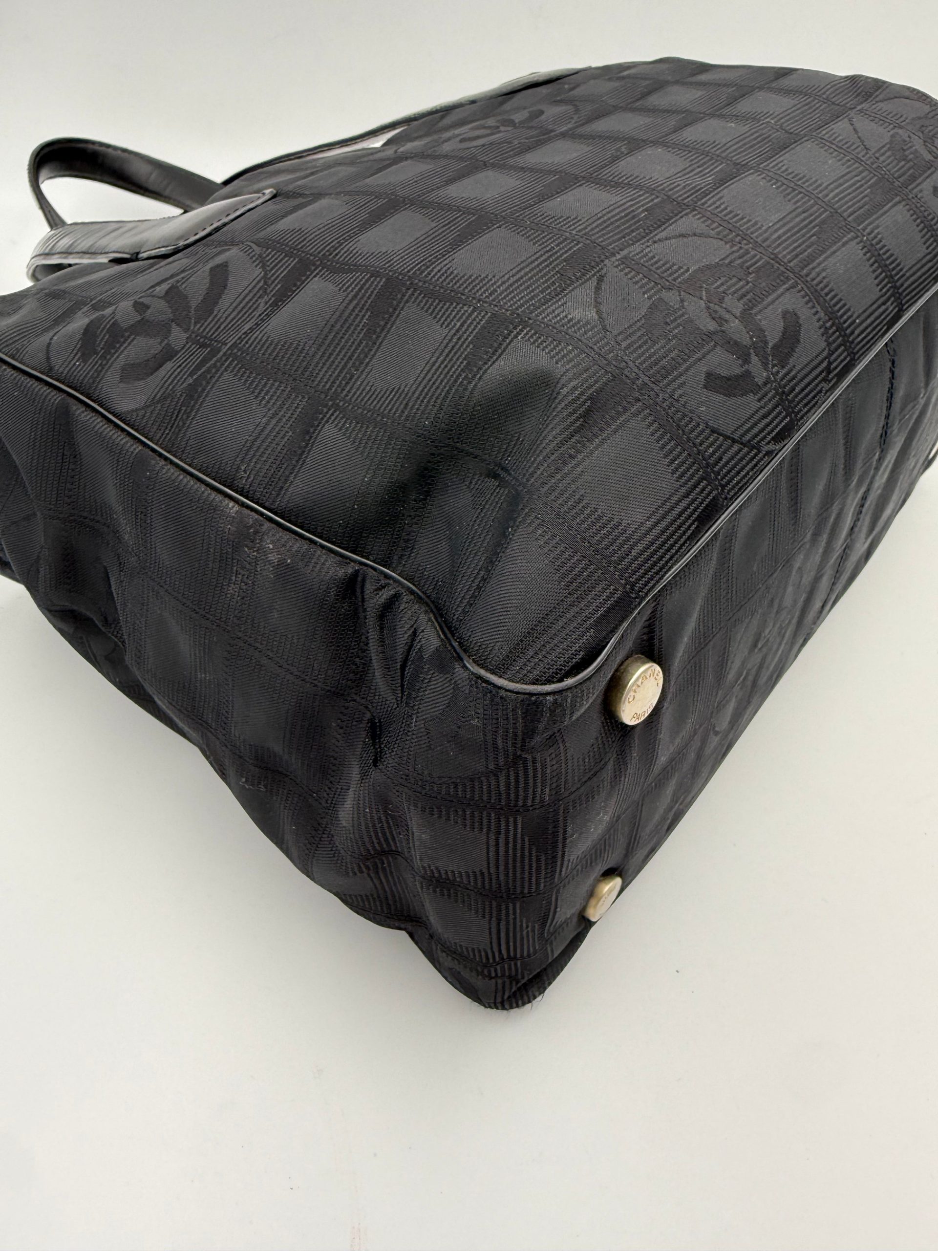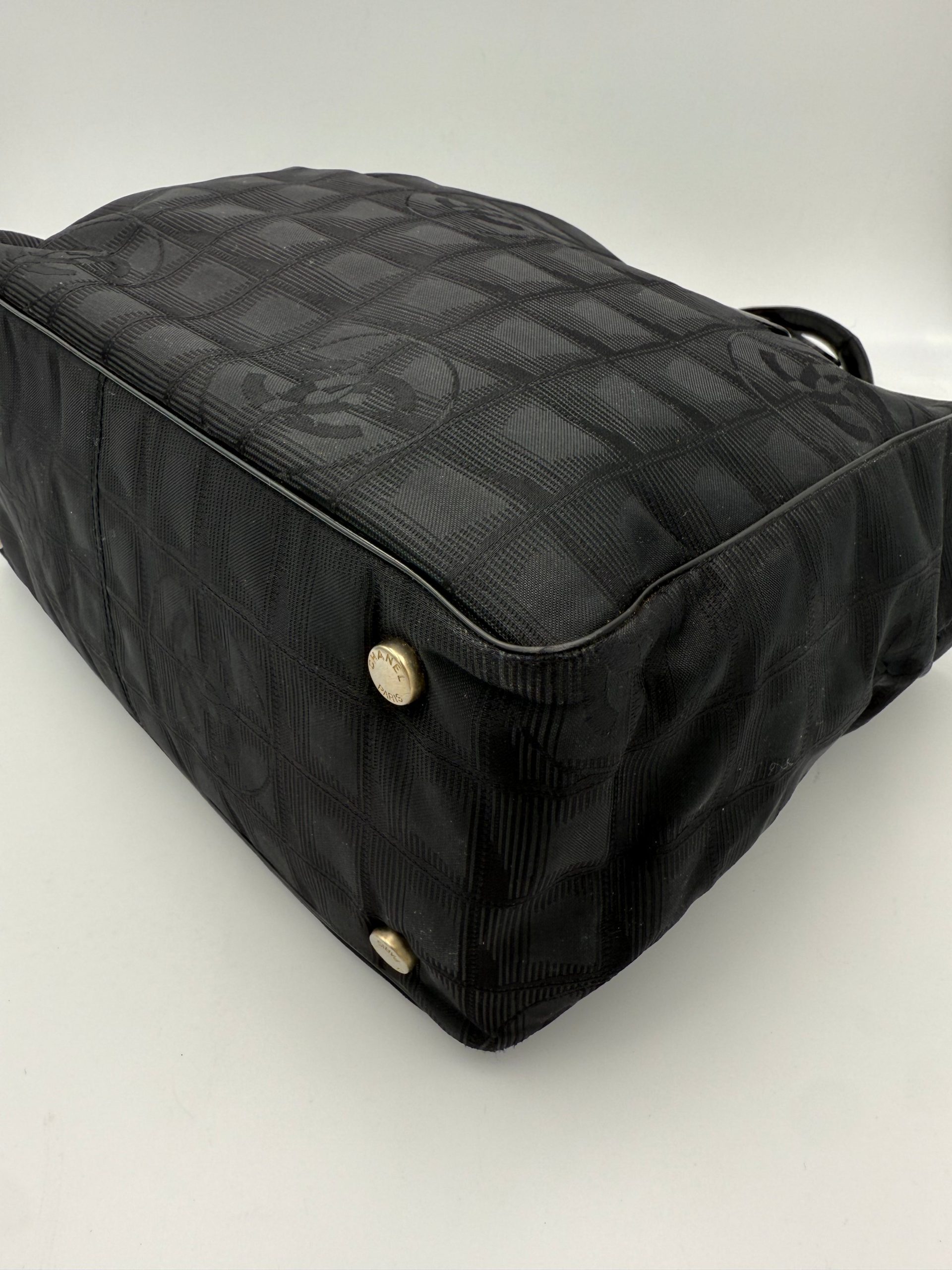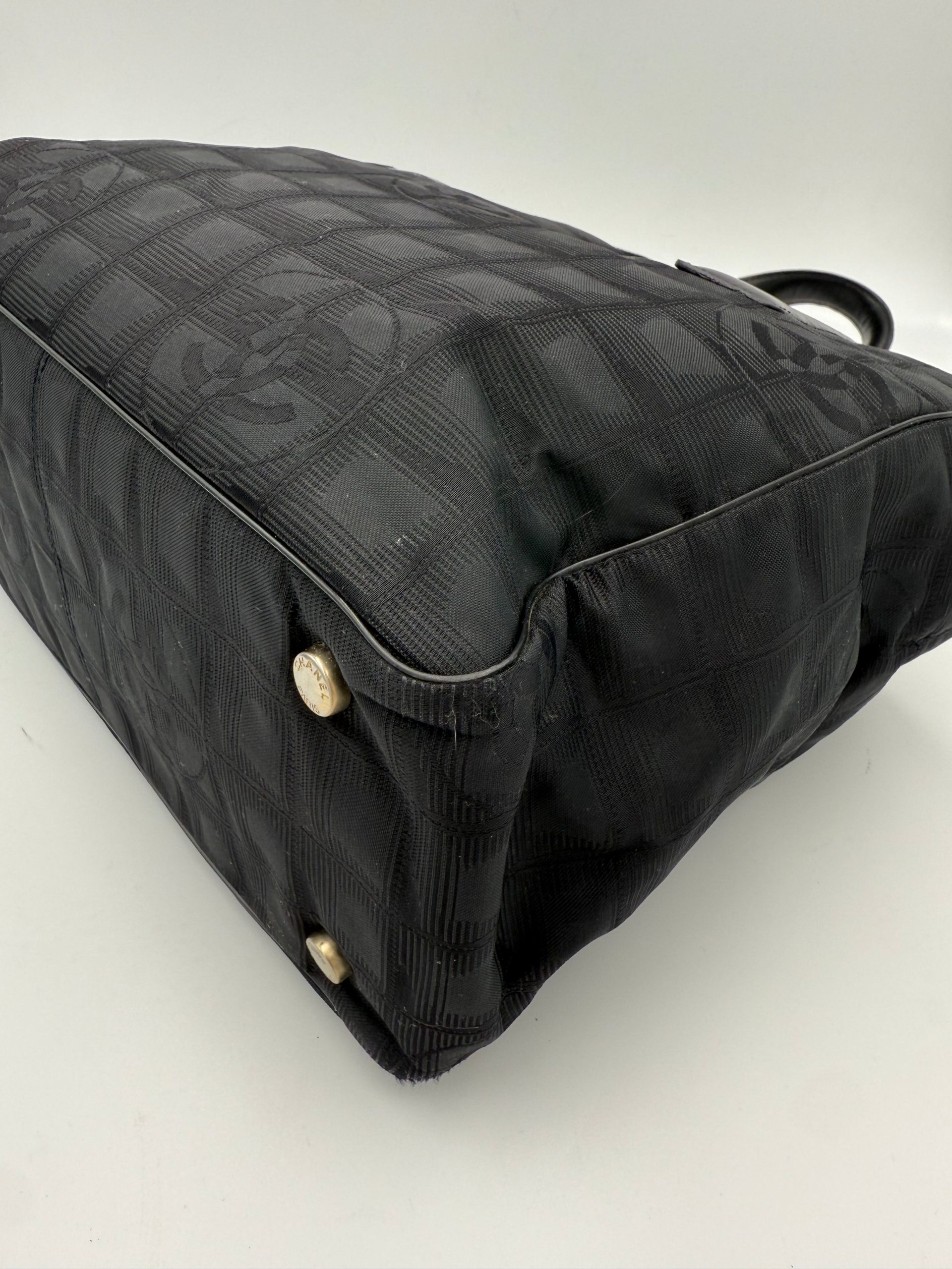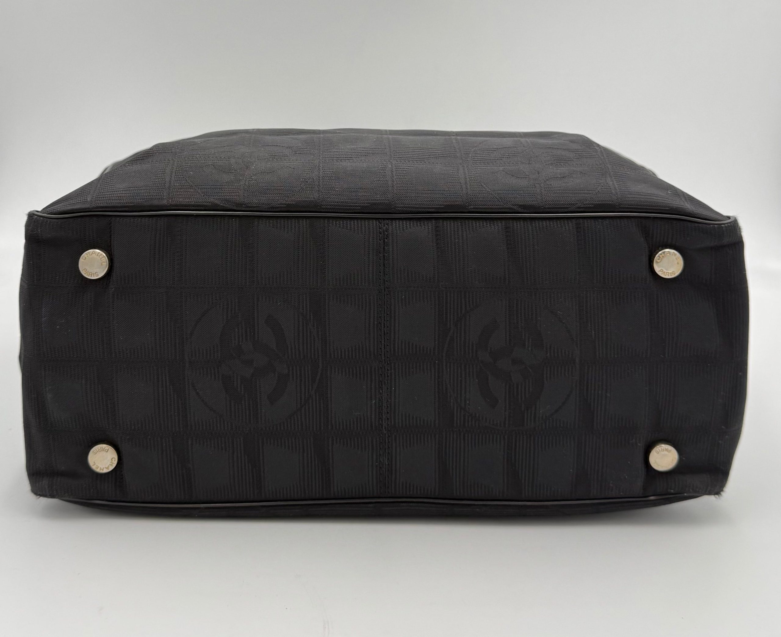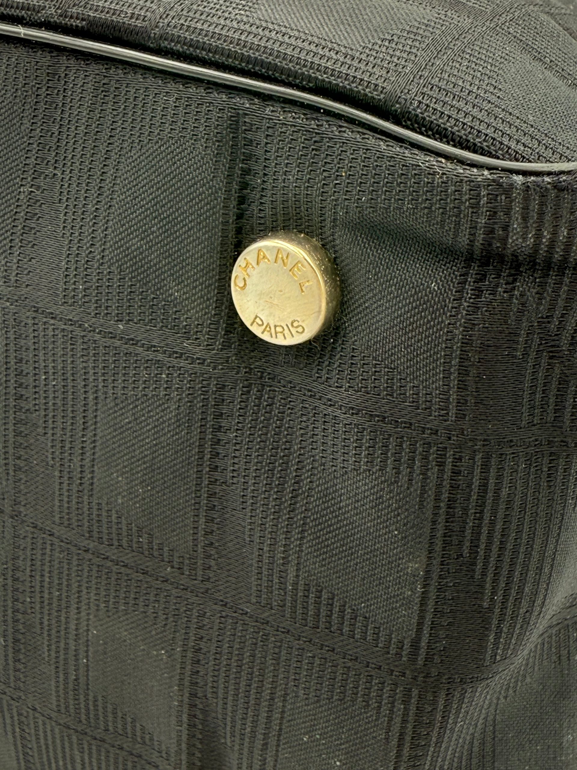 CHANEL Shopping Black Leather and Fabric Tote Bag