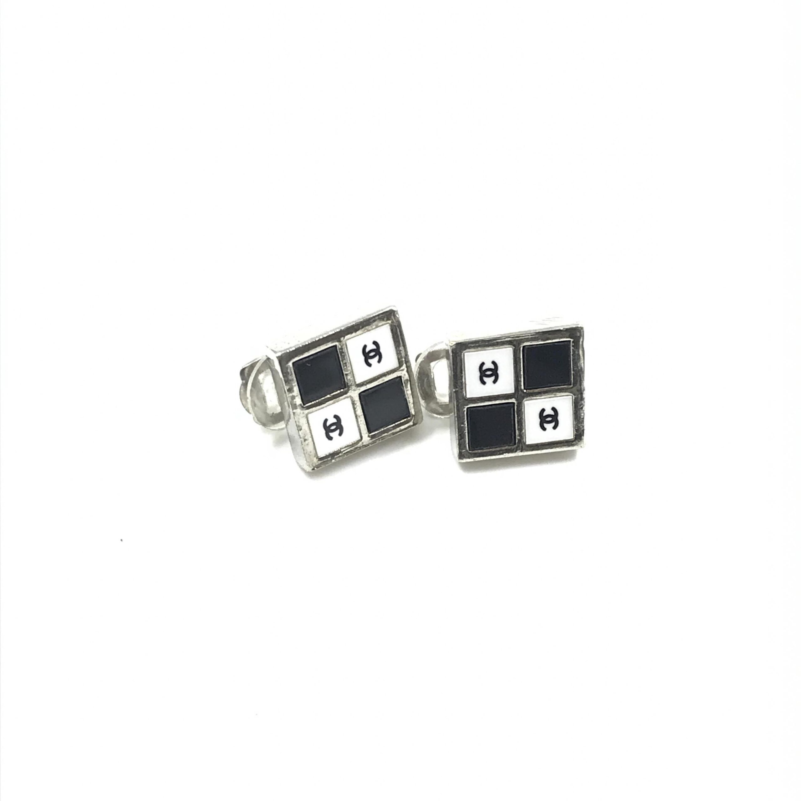 Crafted with meticulous attention to detail, these earrings feature the classic Coco Mark motif, a symbol of luxury and style. The interplay of black and white against the shimmering silver creates a versatile accessory that complements any ensemble, from casual chic to evening glamour.