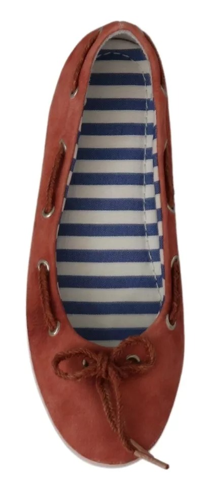 Coral Suede Lace Bow Loafers Ballet Flat Shoes