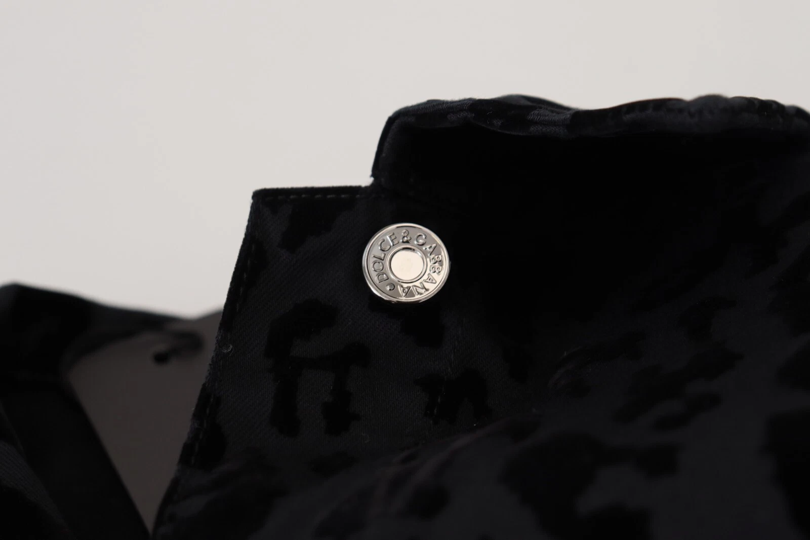 Cotton Black Leopard Long Sleeve Denim Jacket