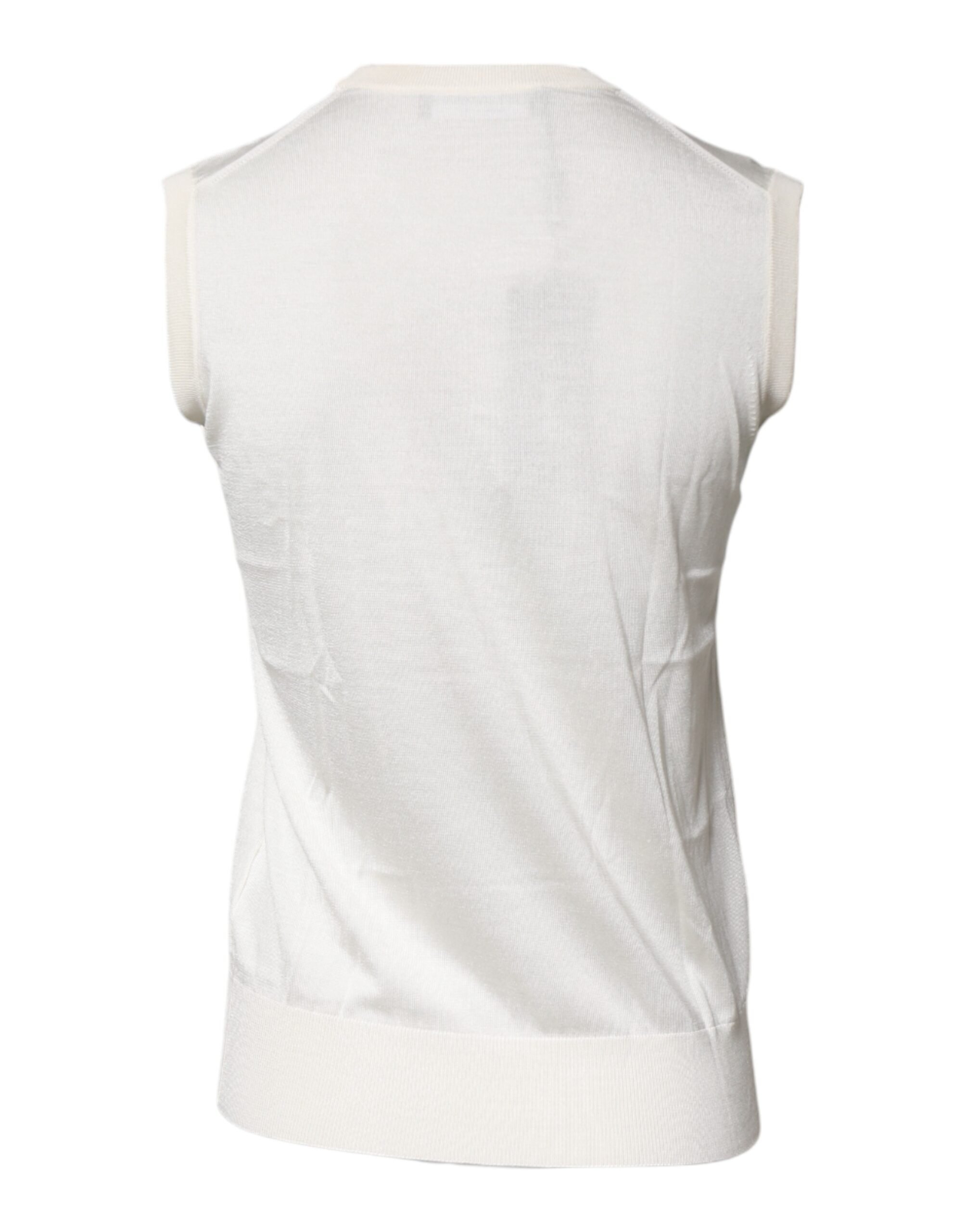 Cream Sleeveless Silk Round Neck Tank Top