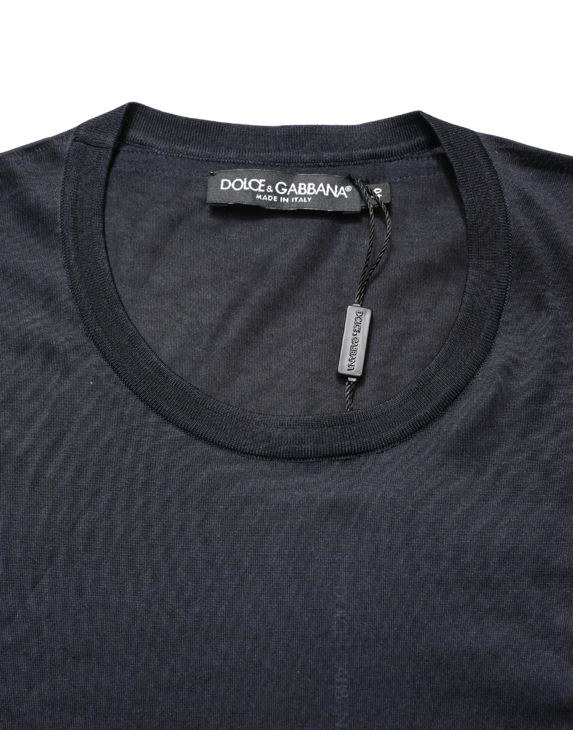 Dark Blue DG Logo Silk Men Crew Neck T-shirt