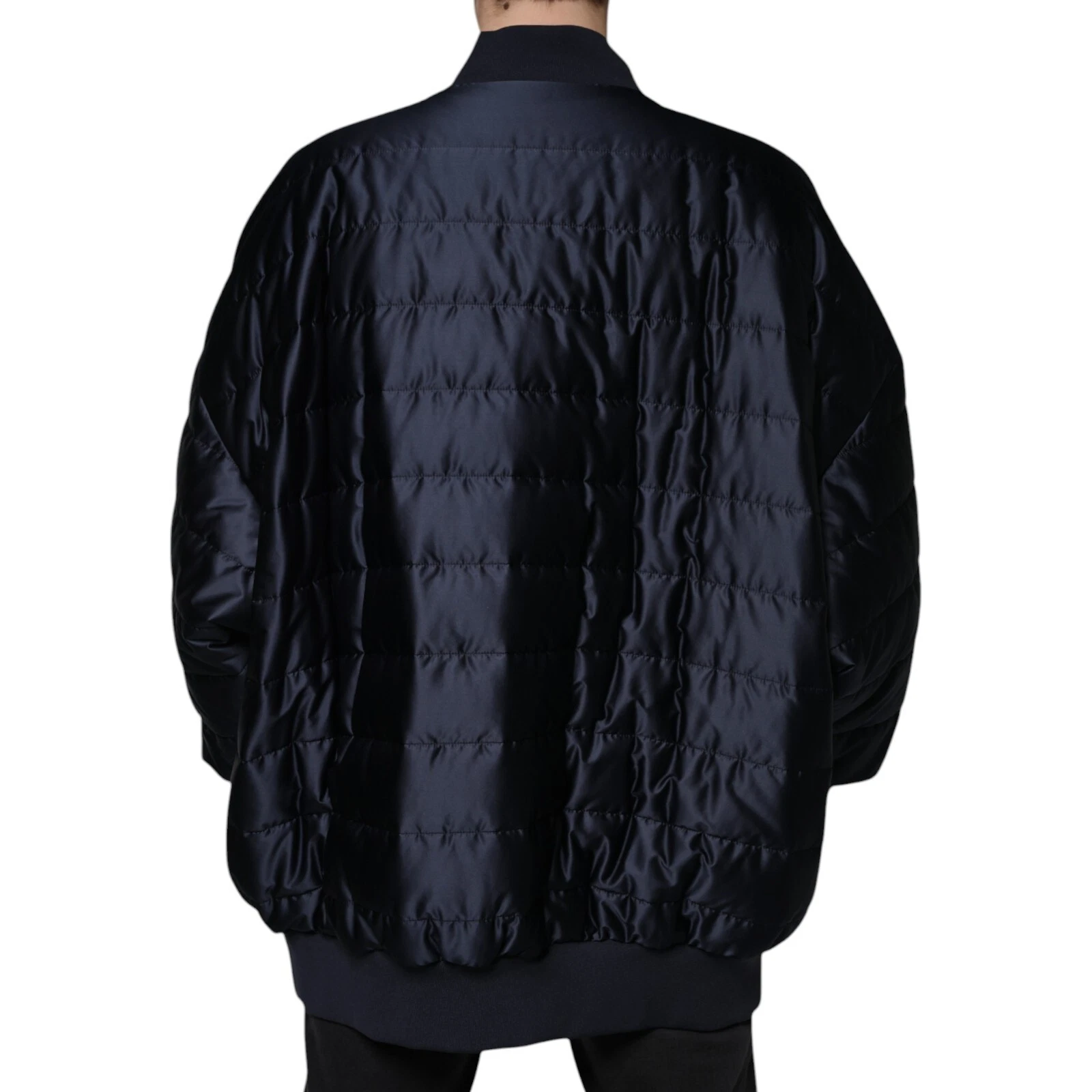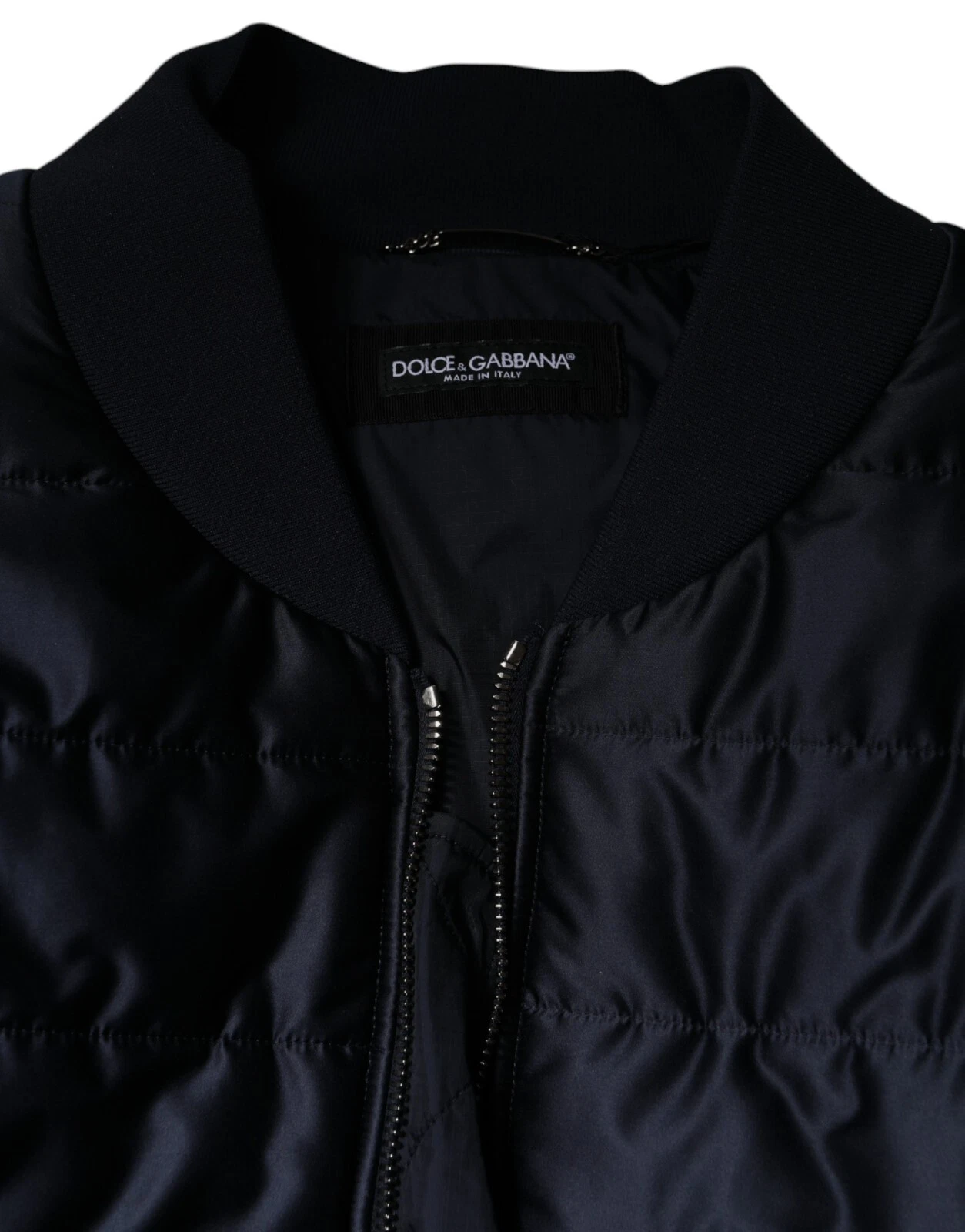 Dark Blue Quilted Full Zip Bomber Jacket