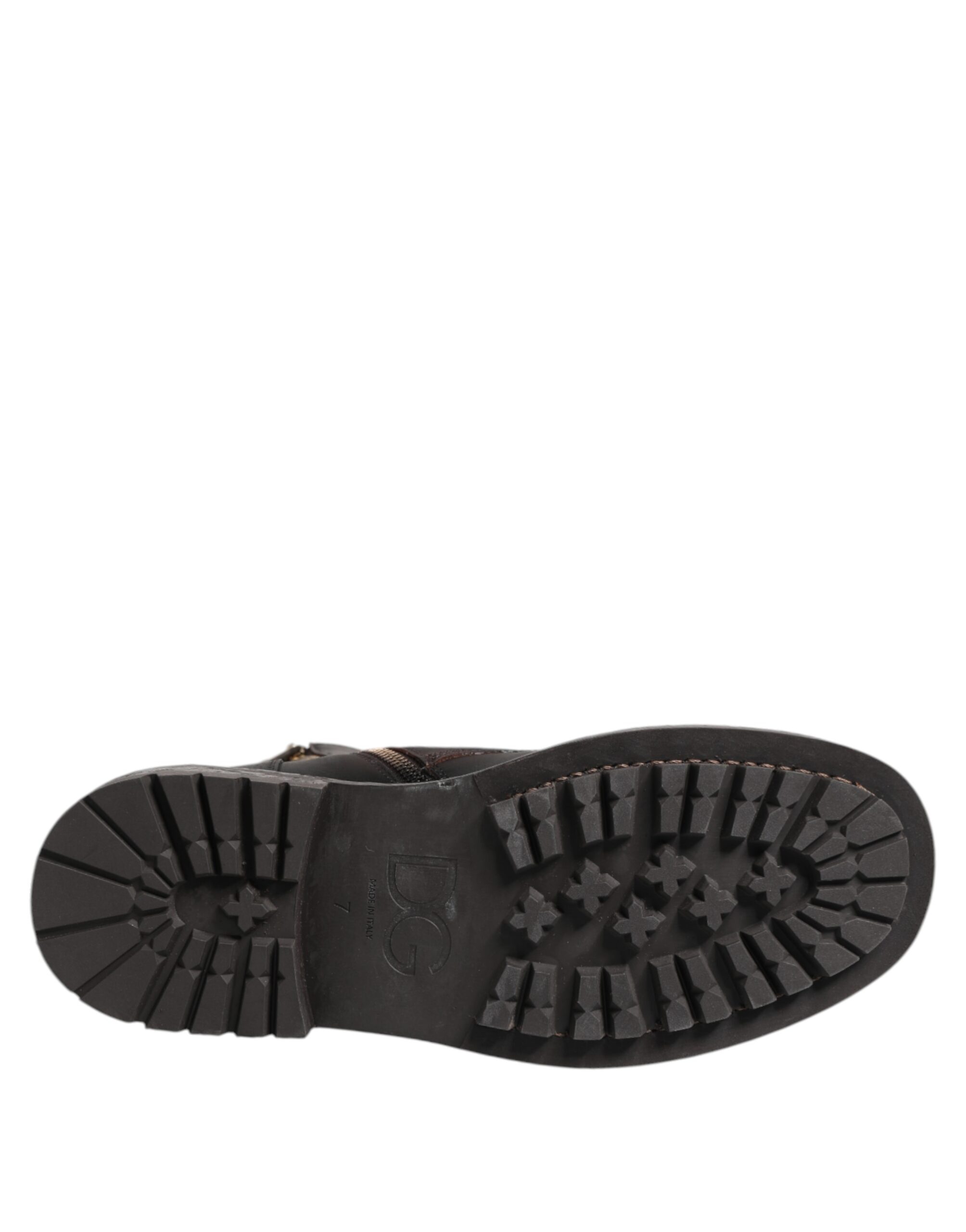 Dark Brown Leather Lace Up Mid Calf Boots Shoes