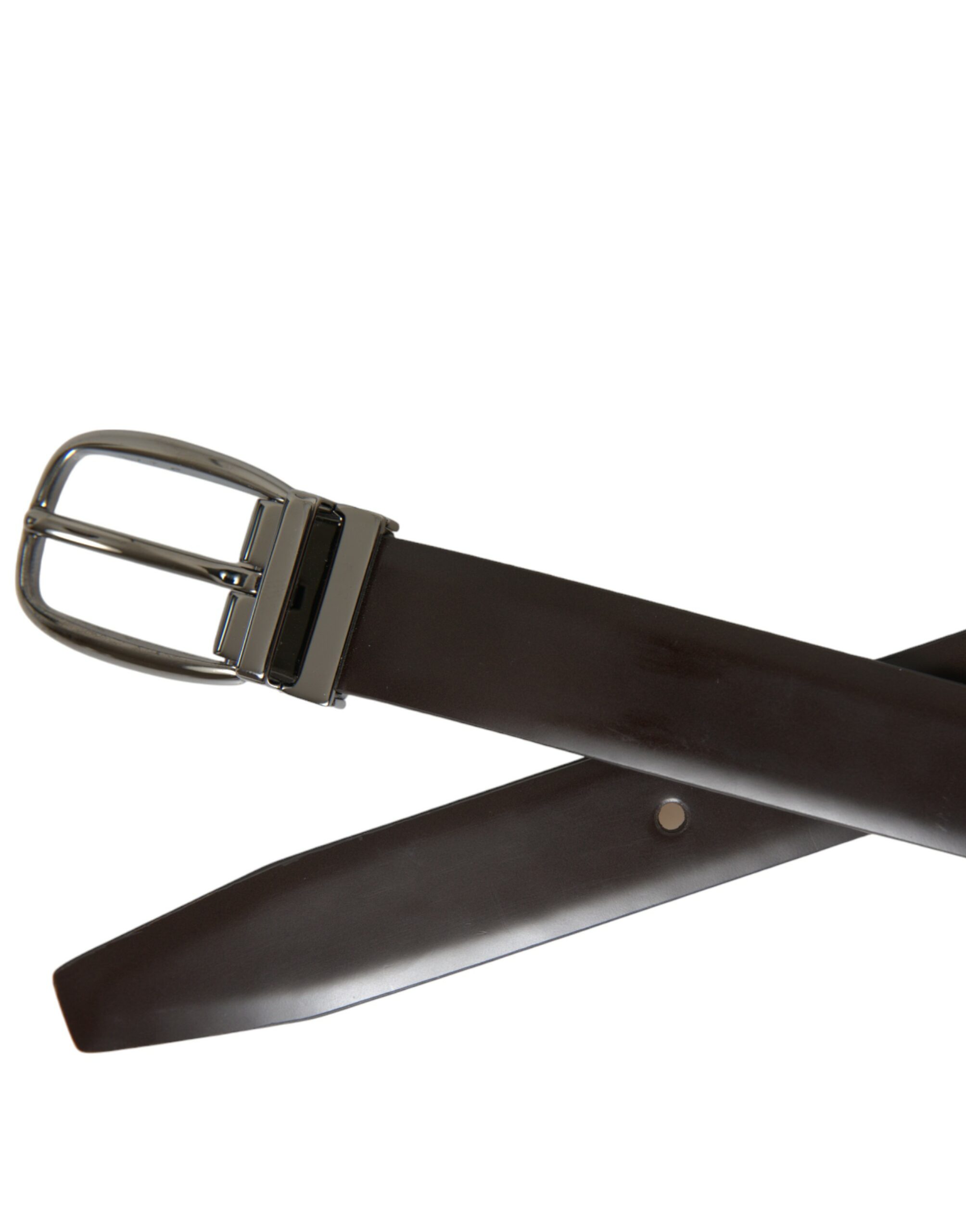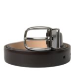 Dark Brown Leather Silver Metal Buckle Belt