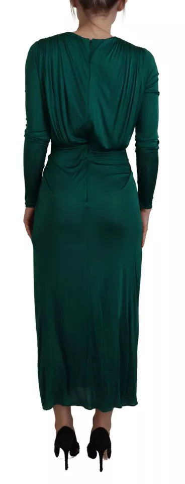 Dark Green Viscose Long Sleeve Midi Dress