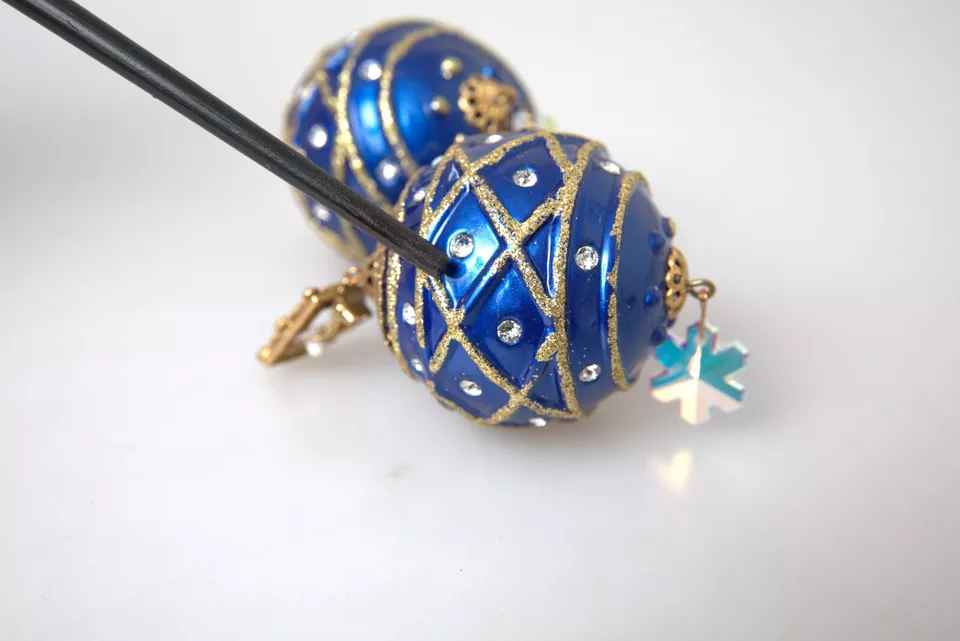 Gold Brass Blue Dangle Christmas Ball Crystal Clip On Earrings