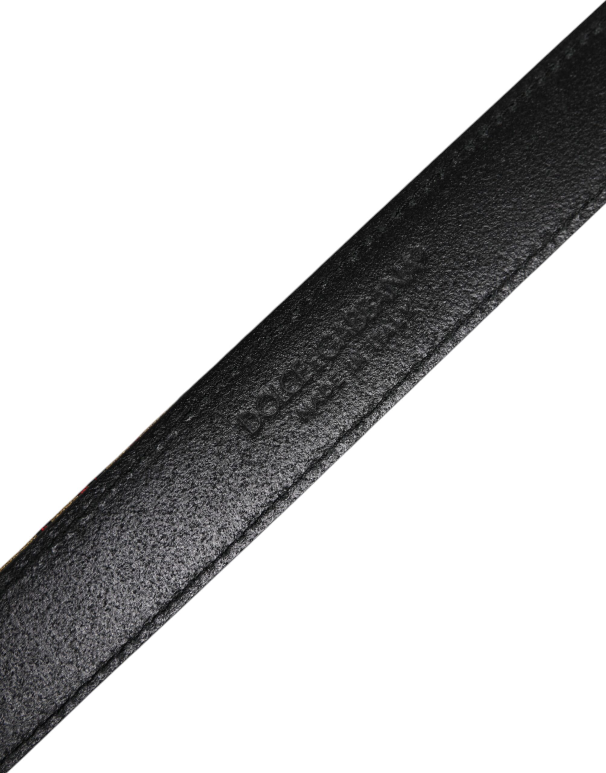 Gold Floral Jacquard Leather Metal Buckle Belt