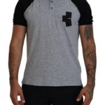 Gray Black Cotton Short Sleeves Collared T-shirt