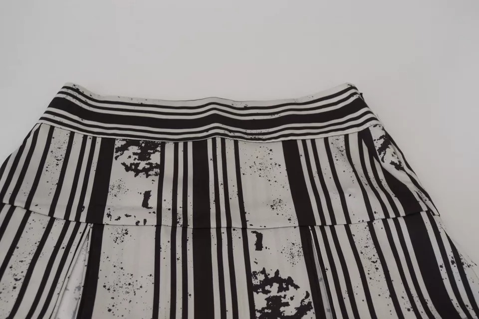 Gray Black Stripes Mid Waist A-line Mini Skirt