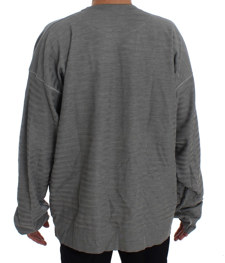 Gray Crewneck Pullover Silk Sweater