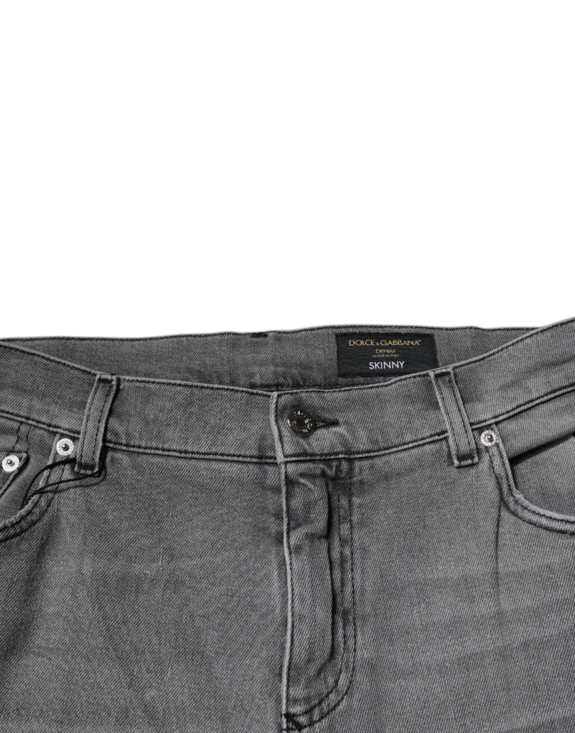 Gray Graphic Print Cotton Skinny Denim Jeans