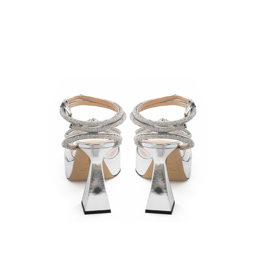 Gray Leather Platform Sandals