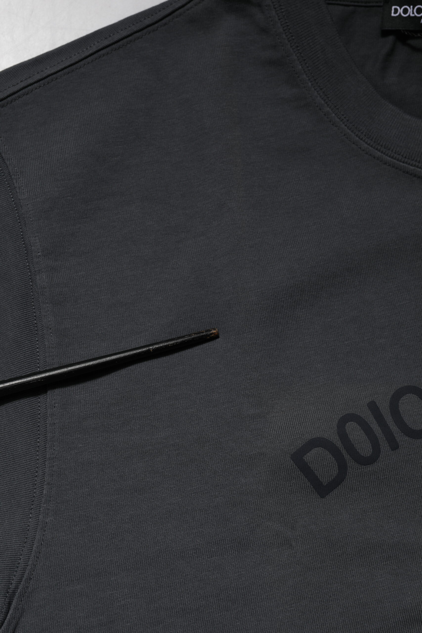 Gray Logo Graphic Cotton Crew Neck T-shirt