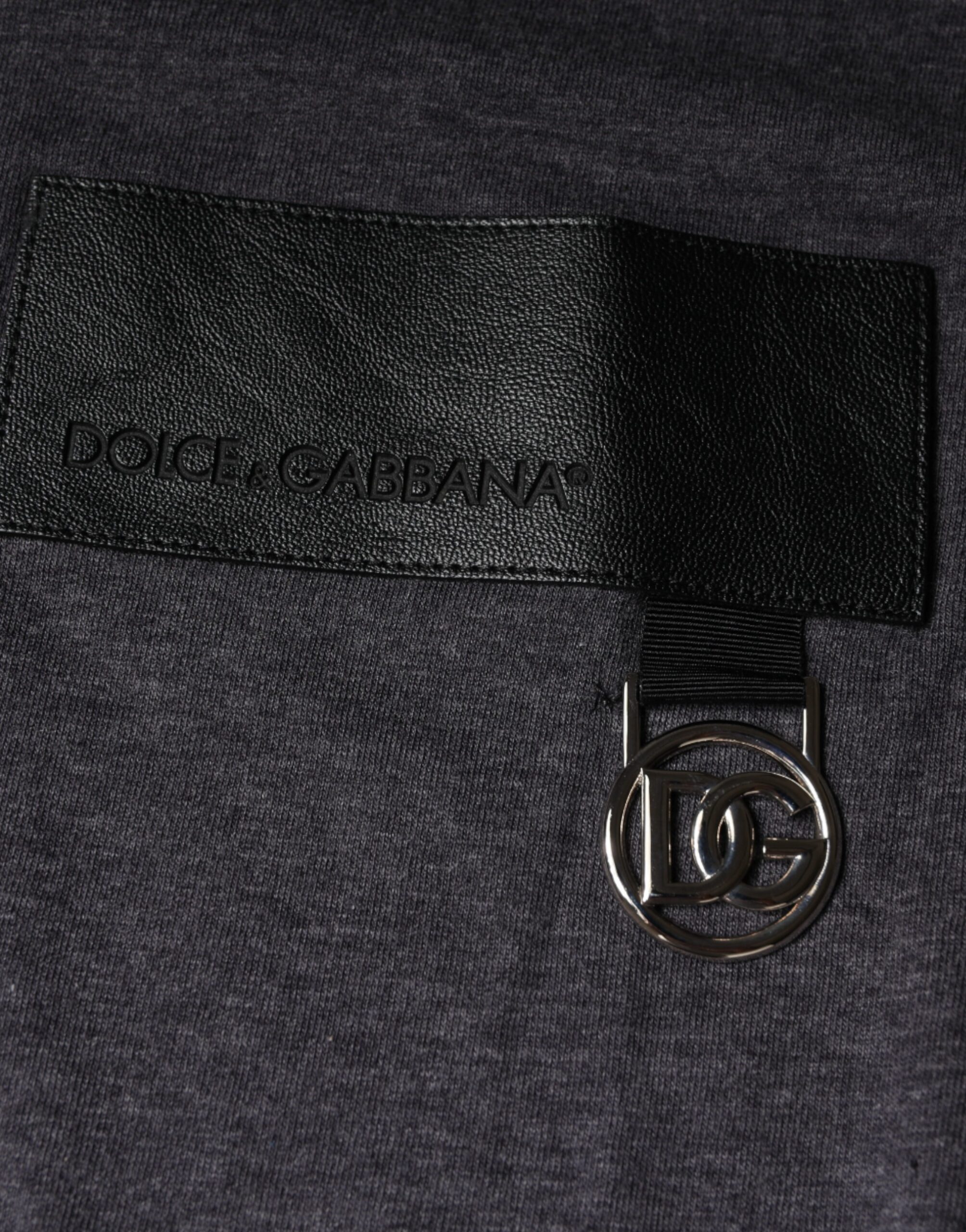 Gray Logo Patch Cotton Crew Neck T-shirt