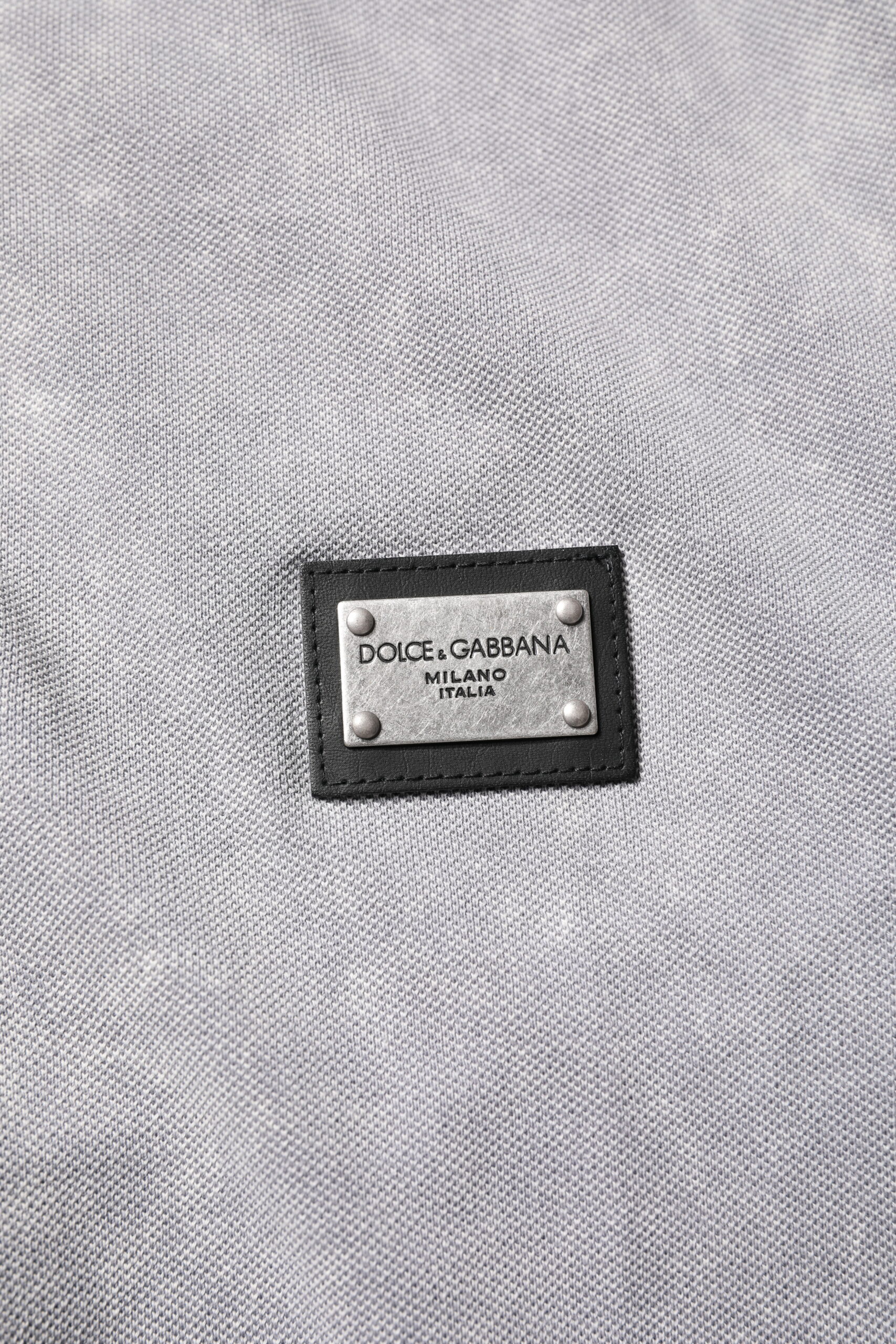 Gray Logo Plaque Cotton Men Polo Shirt T-shirt
