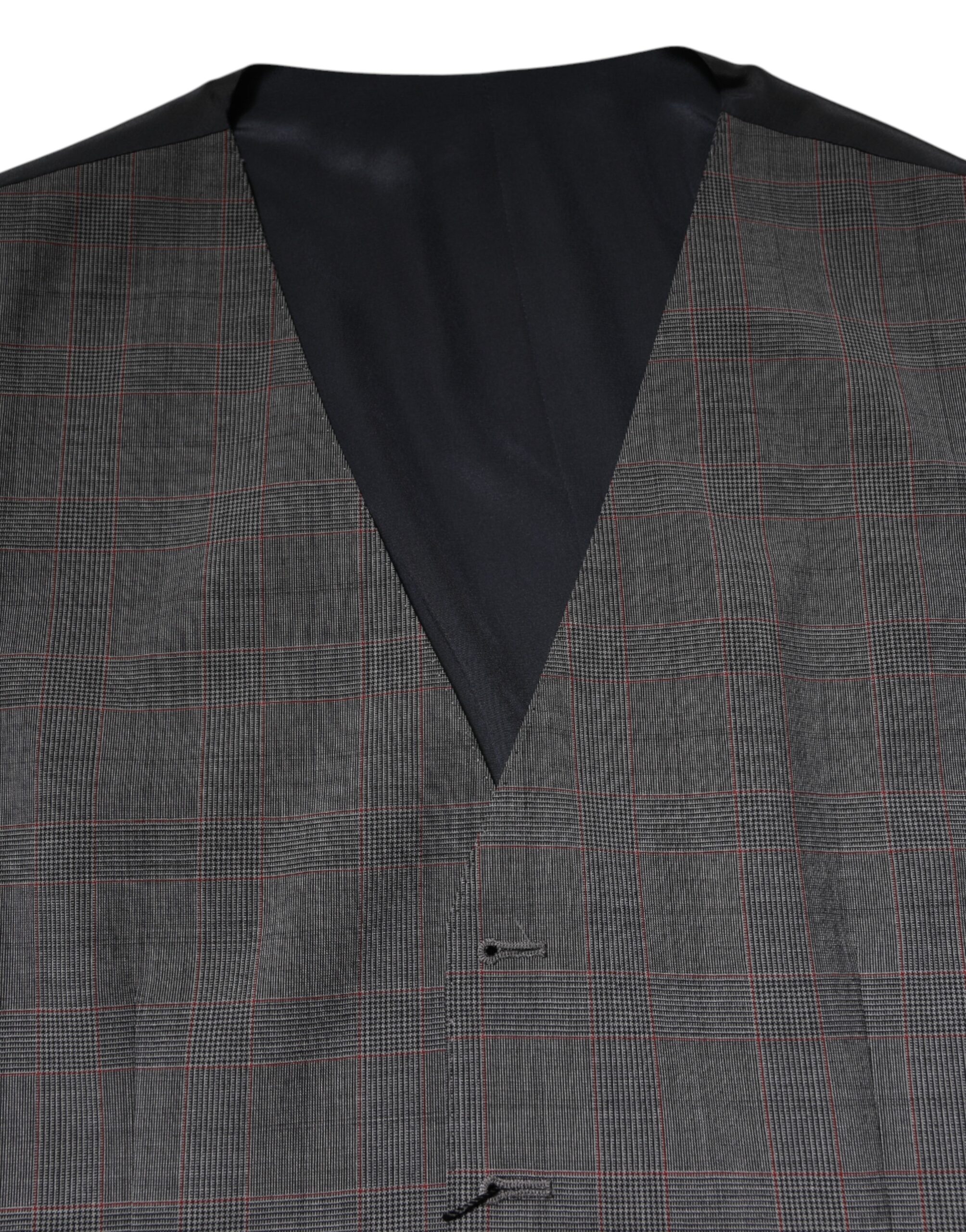 Gray Plaid Wool Formal Dress Waistcoat Vest